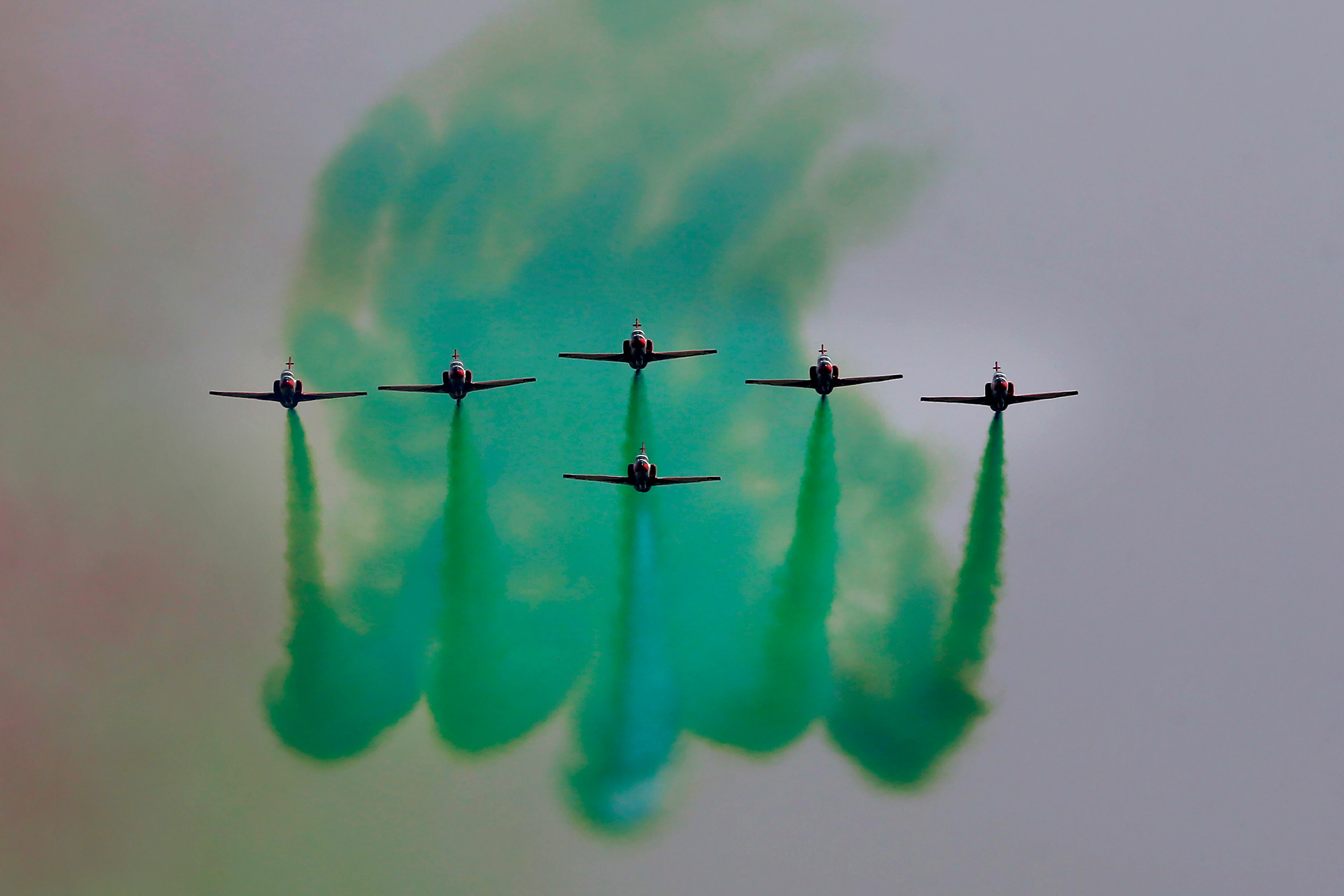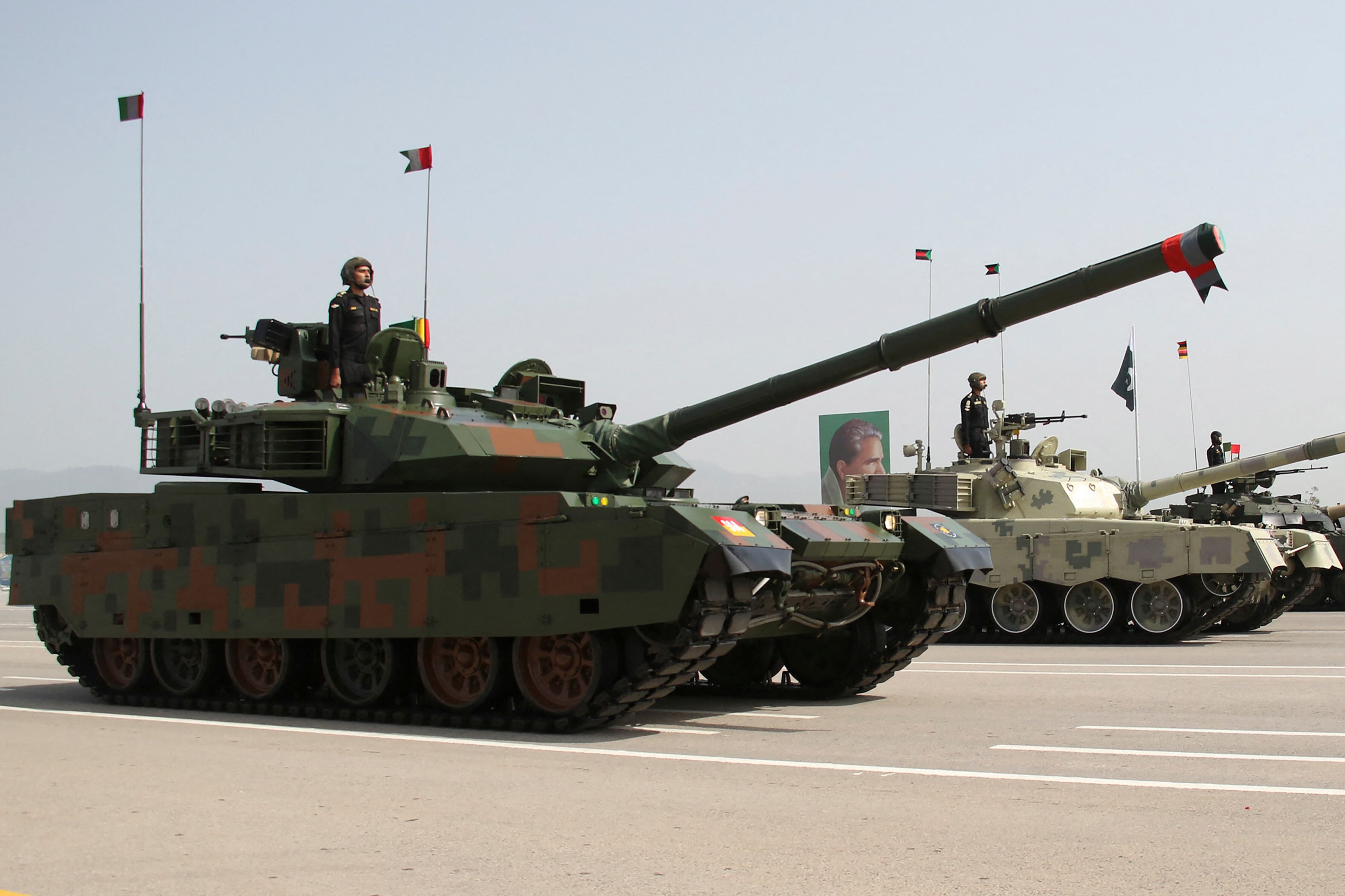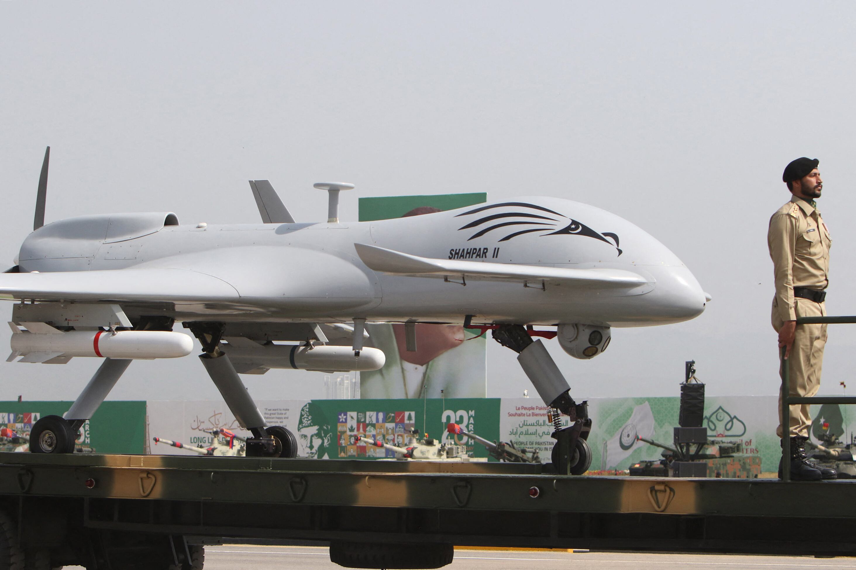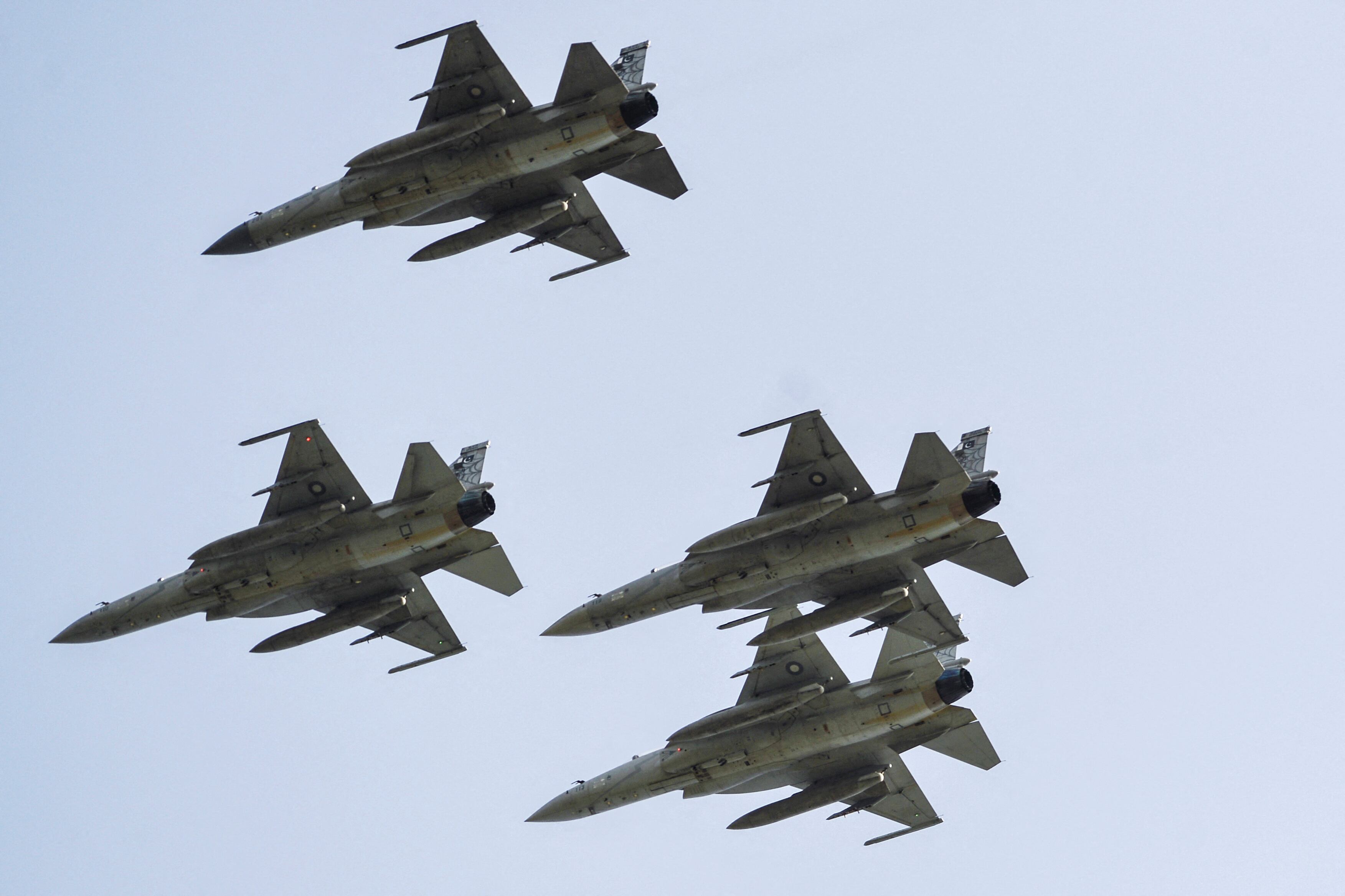 Pakistani soldiers stand on a vehicle carrying the Shaheen long-range ballistic missile during a parade in Islamabad on March 23, 2022. (Ghulam Rasool/AFP via Getty Images)Pakistani soldiers stand atop a tank during the March 23, 2022, parade. (Ghulam Rasool/AFP via Getty Images)A military vehicle carries the the Shahpar-2 drone during the parade in Islamabad on March 23, 2022. (Ghulam Rasool/AFP via Getty Images)Soldiers stand on a vehicle carrying Ra'ad cruise missiles. (Ghulam Rasool/AFP via Getty Images)Pakistani soldiers stand on armored vehicles during the parade in Islamabad on March 23, 2022. (Ghulam Rasool/AFP via Getty Images)Soldiers salute from atop military vehicles carrying missiles Nasr, right, and Babur, left, during the parade. (Ghulam Rasool/AFP via Getty Images)A Pakistani soldier stands atop a military vehicle carrying Fatah missiles. (Ghulam Rasool/AFP via Getty Images)Pakistan Air Force jets fly in formation during a parade in Islamabad on March 23, 2022. (Farooq Naeem/AFP via Getty Images)Pakistan Air Force jets perform aerobatic maneuvers during the parade. (Ghulam Rasool/AFP via Getty Images)Pakistani soldiers hang from a rope of a helicopter flying in Islamabad on March 23, 2022. (Ghulam Rasool/AFP via Getty Images)A paratrooper lands after performing during the Pakistan Day parade in Islamabad on March 23, 2022. (Ghulam Rasool/AFP via Getty Images)Pakistan Navy helicopters fly during the parade on March 23, 2022. (Ghulam Rasool/AFP via Getty Images)Soldiers stand on tanks during the parade in Islamabad on March 23, 2022. (Ghulam Rasool/AFP via Getty Images)Pakistani-made Shaheen-III and Ghauri missiles, which are capable of carrying nuclear warheads, are displayed during a military parade in Islamabad on March 23, 2022. (Anjum Naveed/AP)Pakistani President Arif Alvi, in the green suit, rides in a military vehicle during a review of the military parade to mark the country's National Day. (Anjum Naveed/AP)Pakistani soldiers march during a military parade in Islamabad, Pakistan, on March 23, 2022. (Anjum Naveed/AP)Pakistani commandos from the Special Services Group march during a military parade in Islamabad, Pakistan. Pakistanis celebrated their National Day by showcasing elite army units and high-tech weaponry, including short-, medium- and long-range missiles, tanks, fighter jets, and other hardware. (Anjum Naveed/AP)Pakistan Air Force jets demonstrate an aerobatic performance during a military parade March 23, 2022. (Anjum Naveed/AP)Pakistani President Arif Alvi, center, Prime Minister Imran Khan, third from the left, and top military officials attend a military parade to mark the country's National Day in Islamabad on March 23, 2022. (Anjum Naveed/AP)Pakistanis celebrated their National Day with a military parade in the capital, Islamabad, showcasing this Islamic nation's armed forces and weapons. (Anjum Naveed/AP)