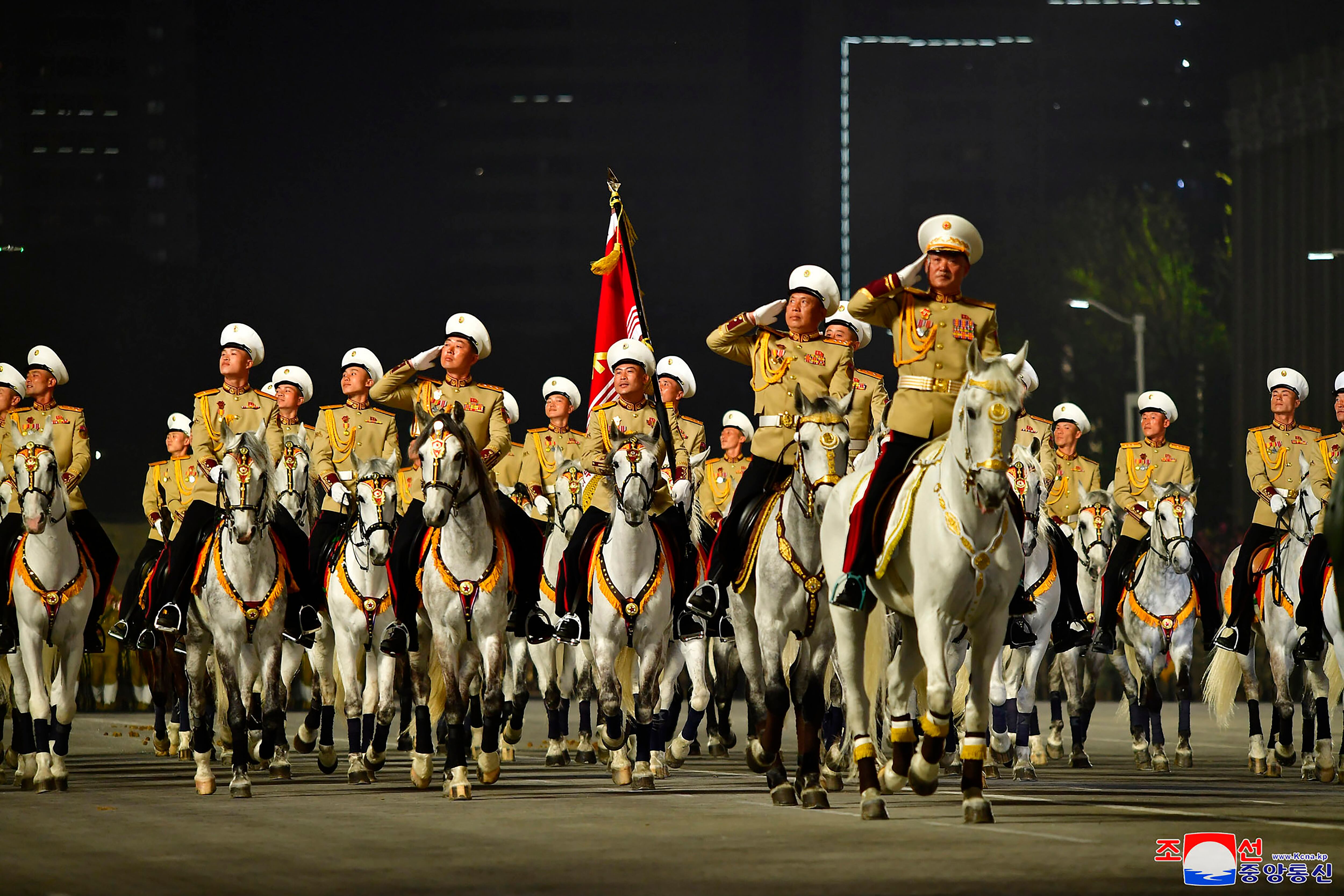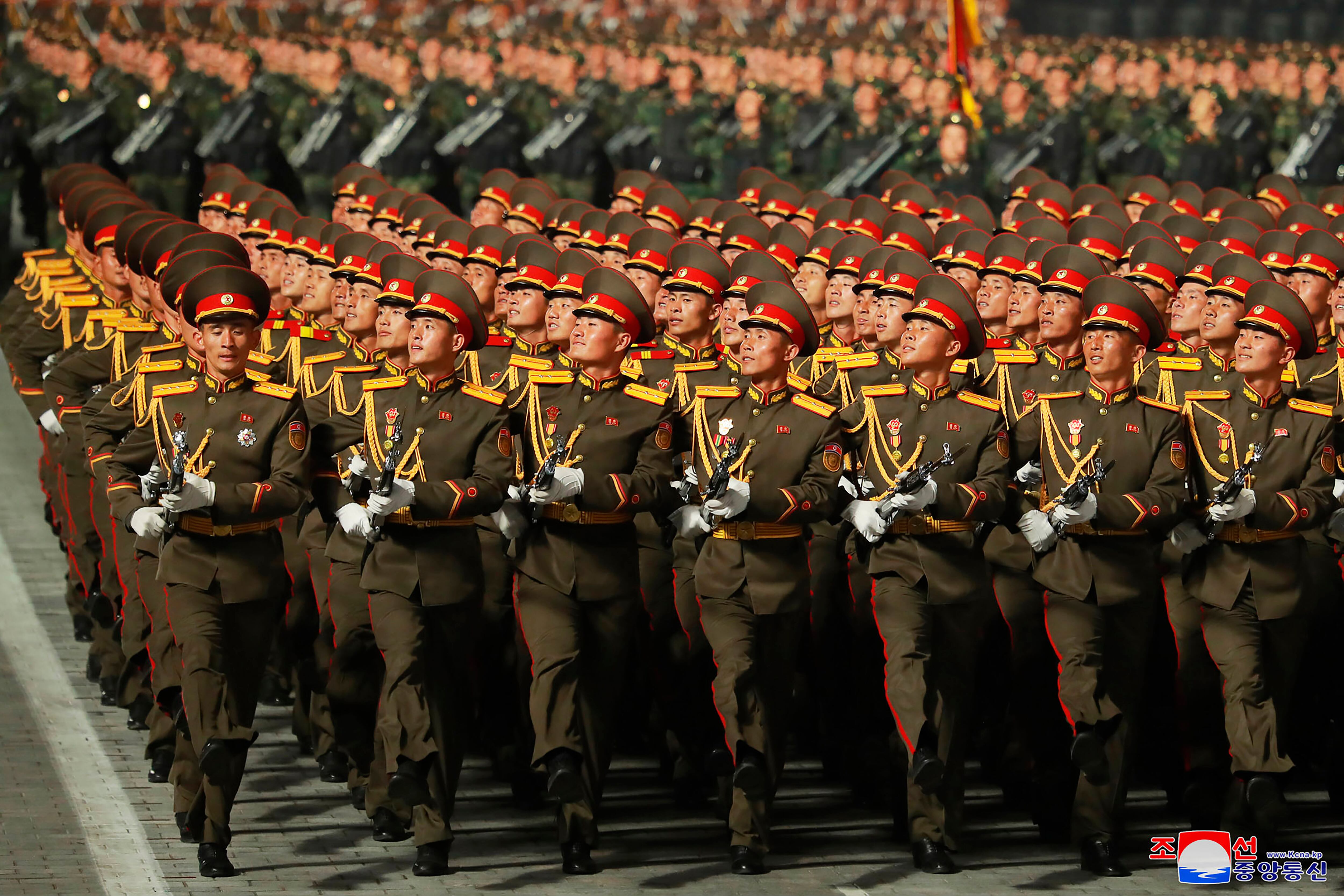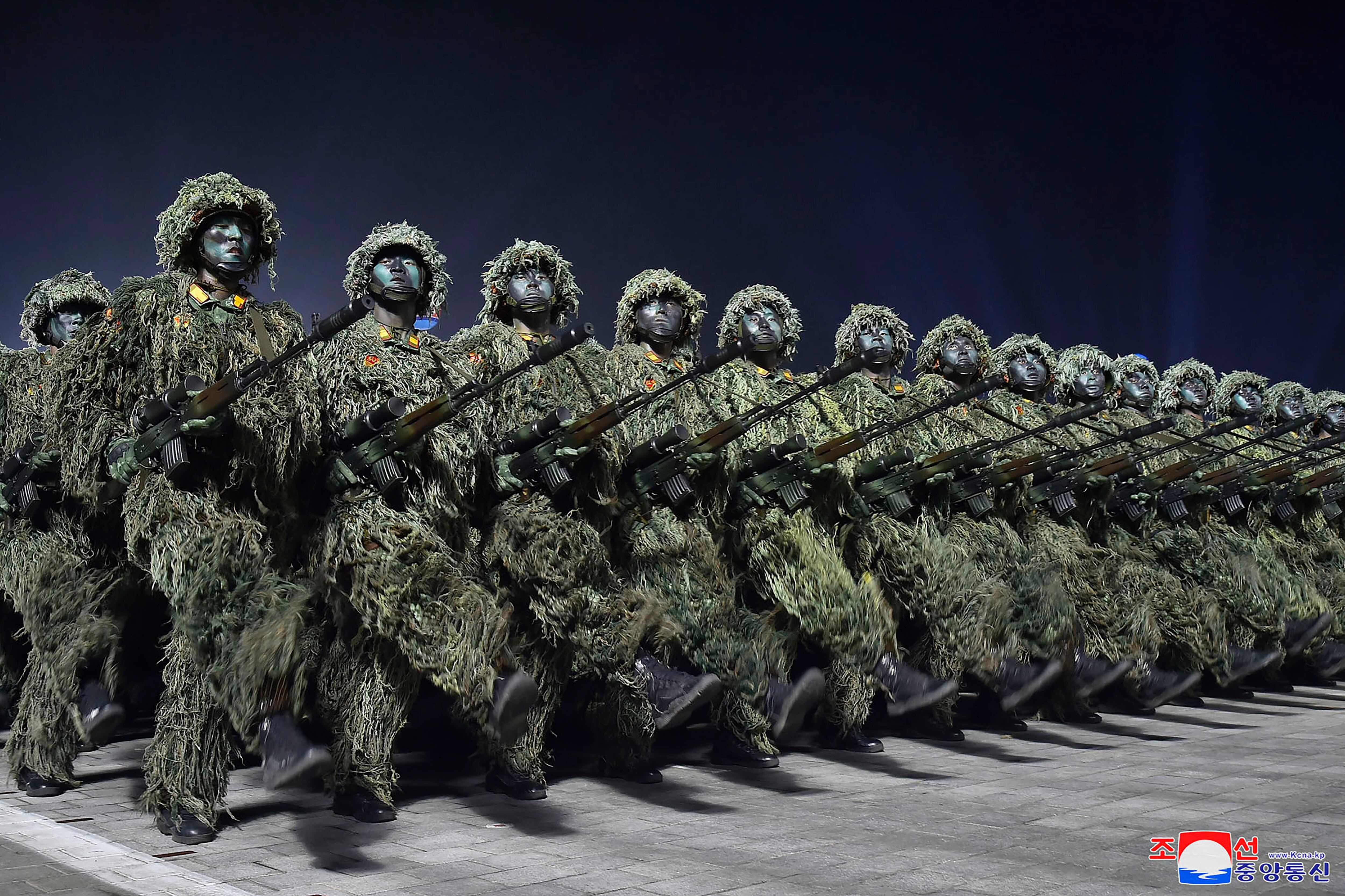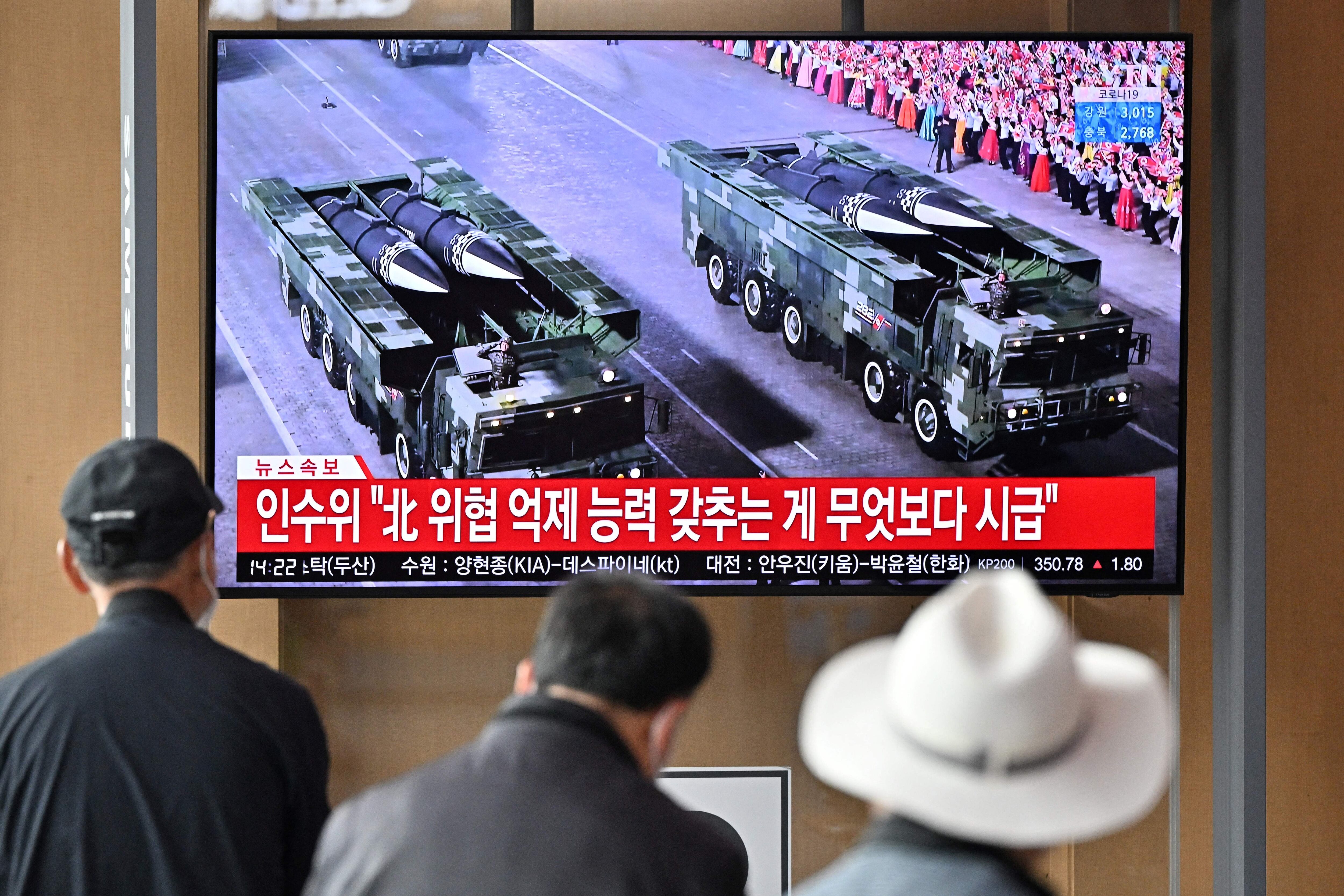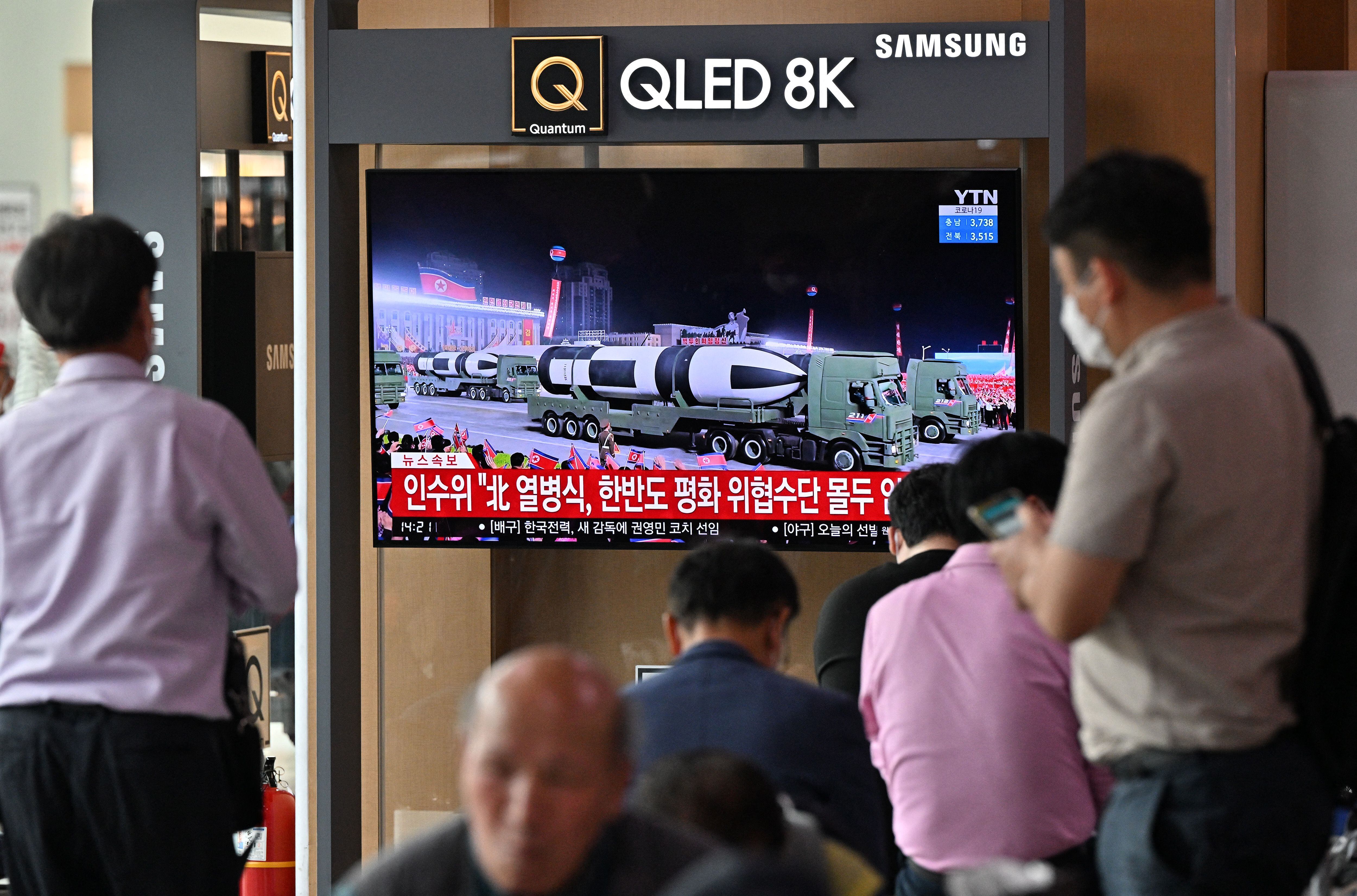 North Korean leader Kim Jong Un, center, delivers a speech during a military parade to mark the 90th anniversary of North Korea's Army at the Kim Il Sung Square in Pyongyang, North Korea, on April 25, 2022. (Korean Central News Agency/Korea News Service via AP)Independent journalists were not given access to cover the event depicted in this image distributed by the North Korean government. The content of this image is as provided and cannot be independently verified. (Korean Central News Agency/Korea News Service via AP)People watch a television screen showing a news broadcast of North Korea's military parade, at a railway station in Seoul, South Korea, on April 26, 2022. (Jung Yeon-je/AFP via Getty Images)North Korean leader Kim Jong Un vowed to accelerate the development of nuclear weapons and threatened to use them if provoked in a speech he delivered at a military parade that featured powerful missiles capable of targeting the country’s rivals, state media reported. (Korean Central News Agency/Korea News Service via AP)The Korean language watermark on this image reads "KCNA," which is the abbreviation for Korean Central News Agency. (Korean Central News Agency/Korea News Service via AP)The parade featured thousands of goose-stepping troops and several of North Korea’s most powerful missiles. (Korean Central News Agency/Korea News Service via AP)One of the weapons showcased at the brightly illuminated Kim Il Sung Square, named after Kim’s late grandfather and state founder, was North Korea’s biggest and newest ICBM, the Hwasong-17. (Korean Central News Agency/Korea News Service via AP)The parade marked the 90th anniversary of North Korea's Army. (Korean Central News Agency/Korea News Service via AP)Fireworks lit up the night sky, and illuminated drones formed the country’s flag. (Korean Central News Agency/Korea News Service via AP)North Korea often commemorates key state anniversaries by mobilizing huge crowds to boost internal unity. (Korean Central News Agency/Korea News Service via AP)North Korea claimed to have test-fired a Hwasong-17 successfully last month, but South Korea concluded the launch was of the smaller Hwasong-15 and that a launch of the Hwasong-17 had failed. (Korean Central News Agency/Korea News Service via AP)People watch a television screen showing a news broadcast of the military parade, from Seoul, South Korea. (Jung Yeon-je/AFP via Getty Images)