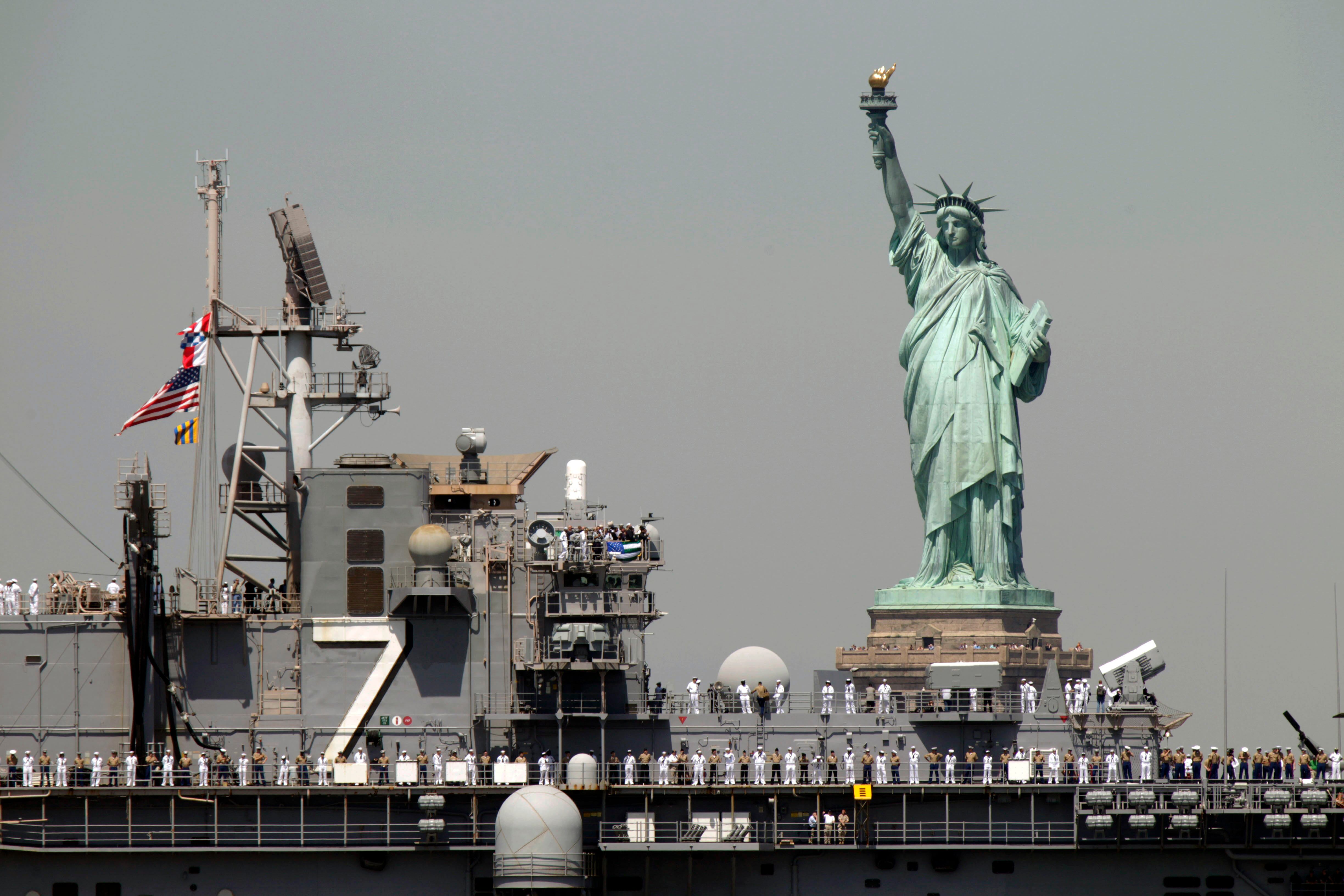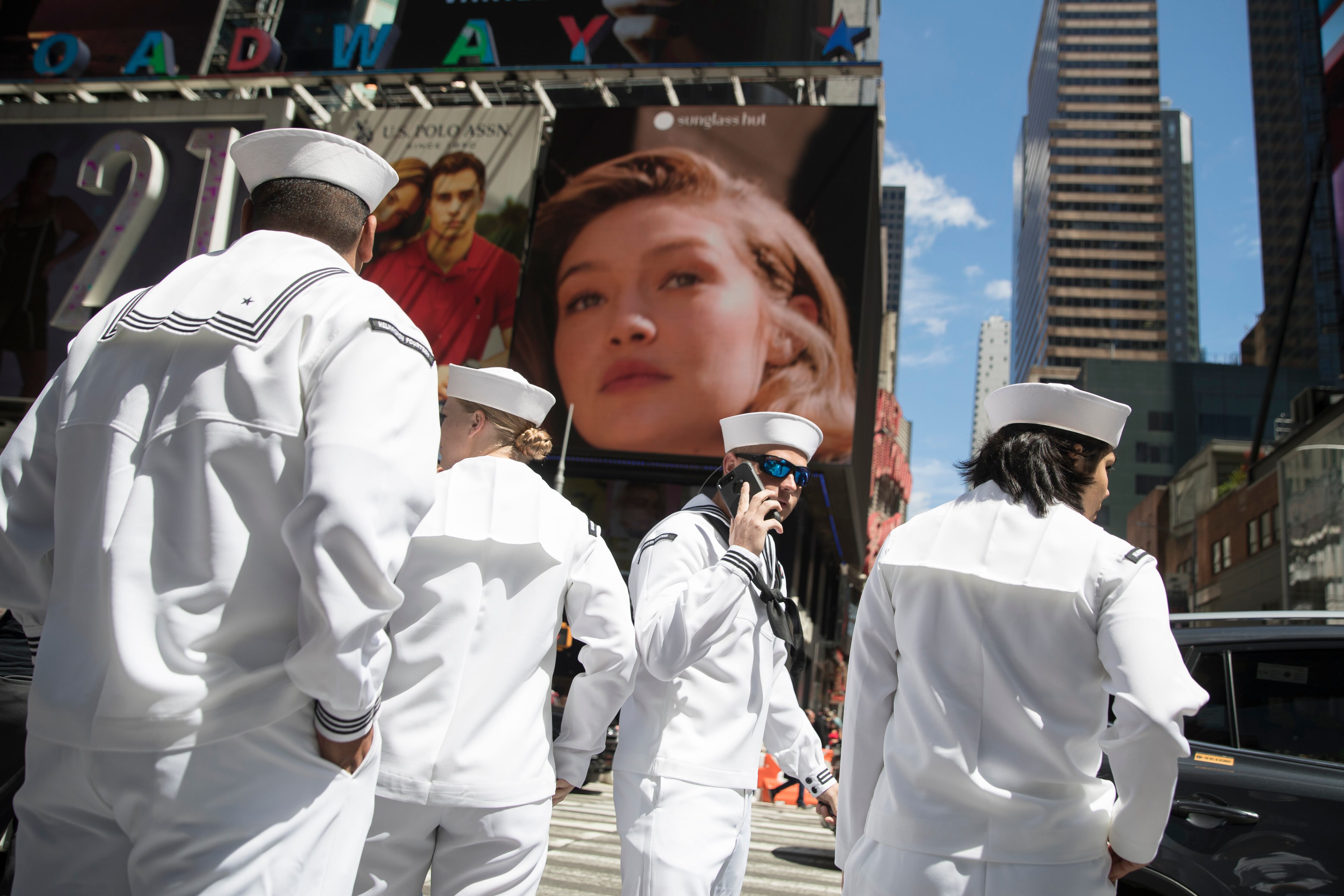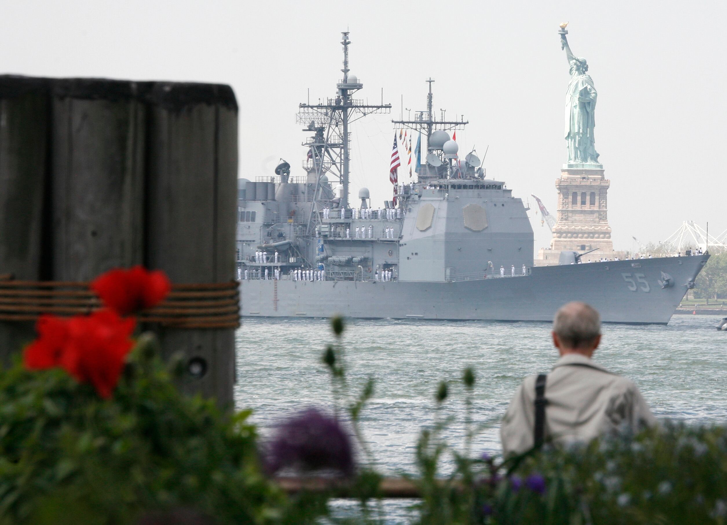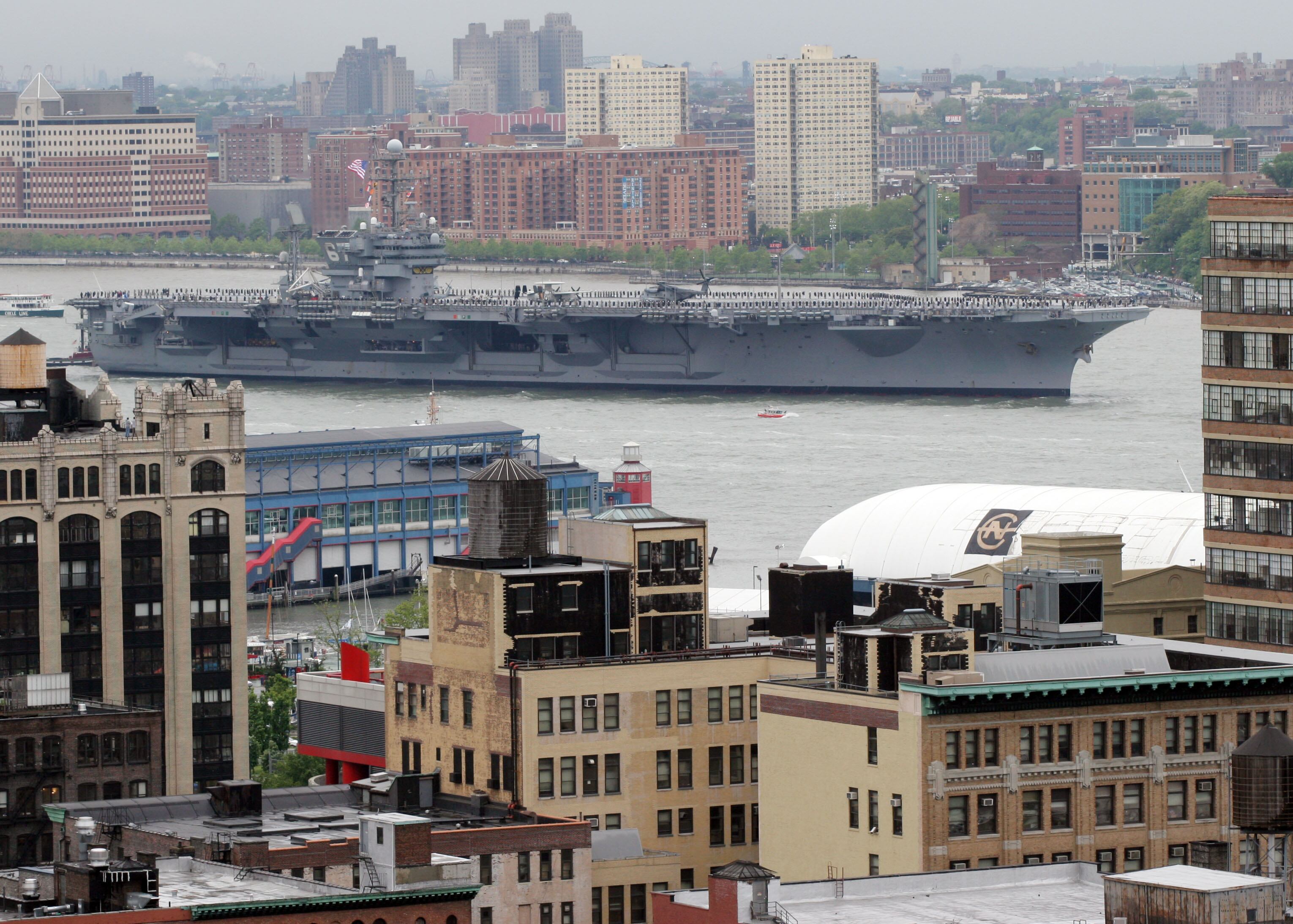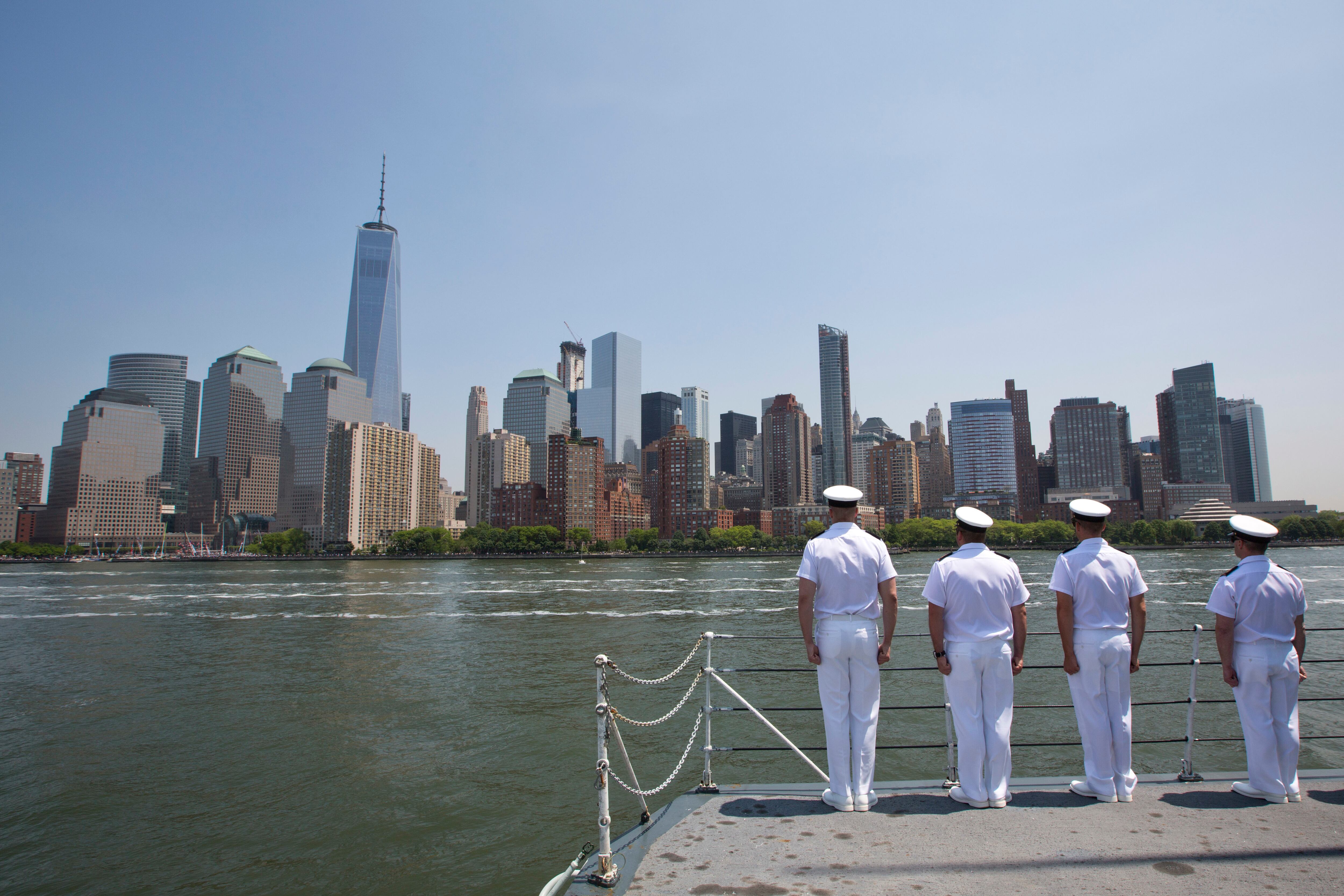 Decorated for Fleet Week, circa 1910. Exact date and location not known. Original photo from a postcard, postmarked USS CONSTELLATION (US Navy/Courtesy of Donald M. McPherson)The colors are presented during the dedication ceremony of the newly constructed Pier 1, part of Navy Fleet Week activities in New York City 1989. (U.S. Navy)The USS Leyte Gulf, a U.S. Navy guided missile cruiser, passes the Statue of Liberty in New York on Wednesday, May 21, 2008. The Leyte Gulf, home-ported in Norfolk, Va., is visiting the city as part of Fleet Week NYC 2008. (AP Photo/Peter Morgan)The US Navy aircraft carrier John F. Kennedy cruises up the Hudson River to mark the beginning of "Fleet Week" in New York City, Wednesday, May 25, 2005. (AP Photo/J. David Ake) Stephanie E. Maurer, left, of Fountain, Mich., a sailor from the USS WASP, look up with sailors from the USS Samuel Elliot Morison, from left, Jose R. Vaquera of Houston, Jeffrey D. Erwin of Temple, Ariz., Jim W. Branton of Minden, La., and Felipe Garcia of Gillette, Wyo., in New York's Times Square, Friday, May 28, 1999. Navy ships are anchored at the West Side piers for Fleet Week and open for visitors during this Memorial Day weekend. (AP Photo/Ed Bailey)FILE- In this May 25, 2011, file photo, sailors stand on the deck of the USS Iwo Jima as it passes by the Statue of Liberty to kick off Fleet Week in New York. After a year's absence, Fleet Week is coming back to New York City. Three Navy ships and two Coast Guard cutters are scheduled to arrive in New York Harbor on Wednesday, May 21, 2014, the start of the week. (AP Photo/Seth Wenig, File)Crew members of the Her Majesty Canadian Ship Athabaskan stand guard as they sail past lower Manhattan, Wednesday, May 25, 2016. The annual Fleet Week is bringing a flotilla of activities that includes a parade of ships sailing up the Hudson River and docking around the city. The events continue through Memorial Day. (AP Photo/Mary Altaffer)A group of sailors make their way through Times Square, Friday, May 24, 2019, during Fleet Week New York. (AP Photo/Mary Altaffer)