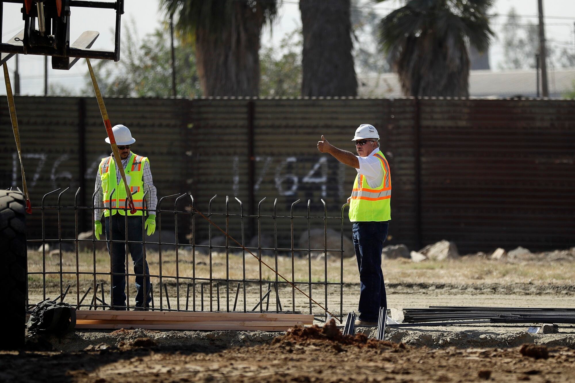 The rectangular construction zone is fenced off from public viewing in a remote area of San Diego along the Mexico border.