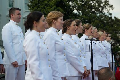 Members of the U.S. Navy Band Sea Chanters rehearse for the live broadcast of the annual Fourth of July celebration on the South Lawn of the White House. (U.S. Navy/Musician 1st Class David Aspinwall)