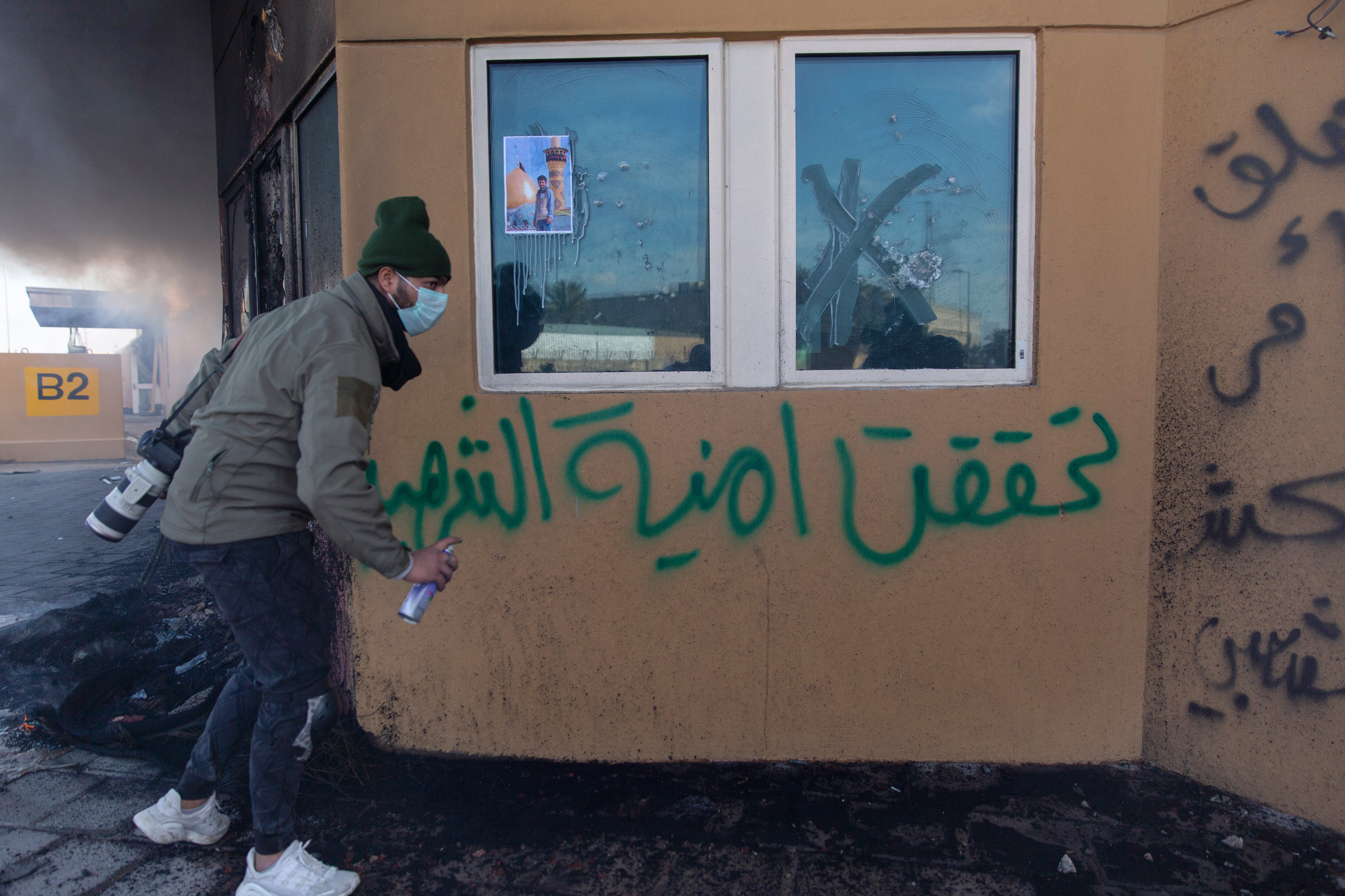They have also set up a sprawling protest camp in central Baghdad, and for weeks have been trying to enter the Green Zone. Iraqi security forces have beaten them back with tear gas and live ammunition, killing hundreds.