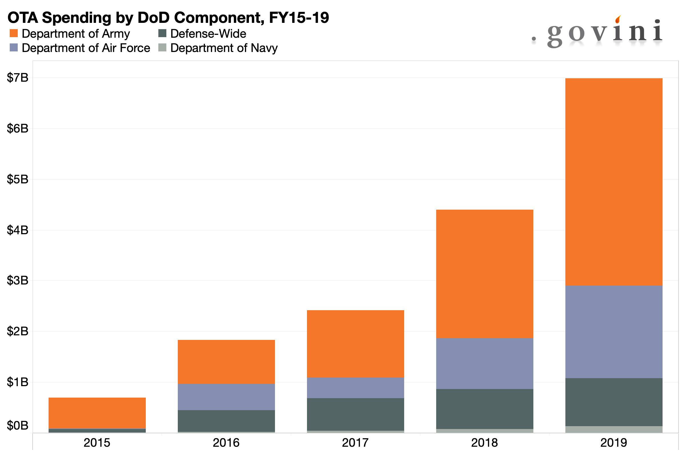 “The Defense Department’s surging use of OTAs reflects its strong desire to break free from the stringent acquisition process, better access innovative technologies, and lure new companies to the defense ecosystem who otherwise may not see the federal government as a viable or lucrative potential market,” said Tara Murphy Dougherty, Govini CEO.