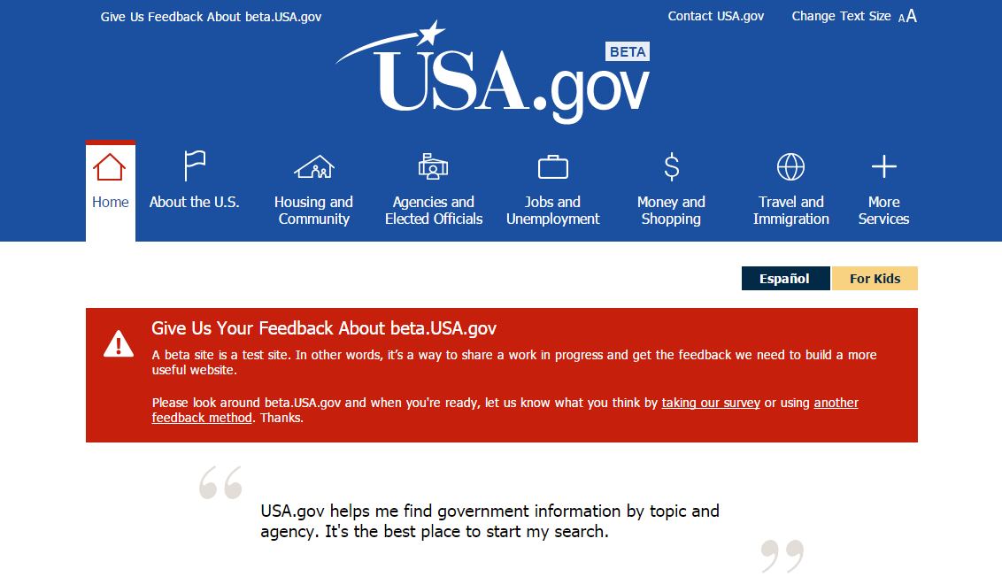 USA.gov is taking comments on its beta release through an online survey and feedback page on GitHub.