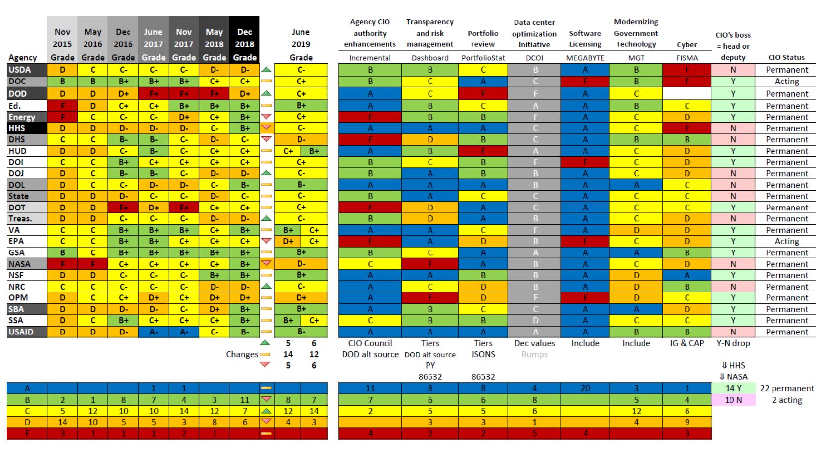 The new scorecard, released June 26, included updated requirements for chief information officer authority and a new section on Federal Information Security Management Act, both of which were factored into the final grade on a non-preview basis for the first time.
