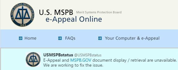 MSPB appellants can also request an extension for e-filing petitions for appeal, petitions for review and any other filings that require access to e-Appeals. Late submissions must explicitly state the delay was caused by the system outage in order to qualify for an extension.