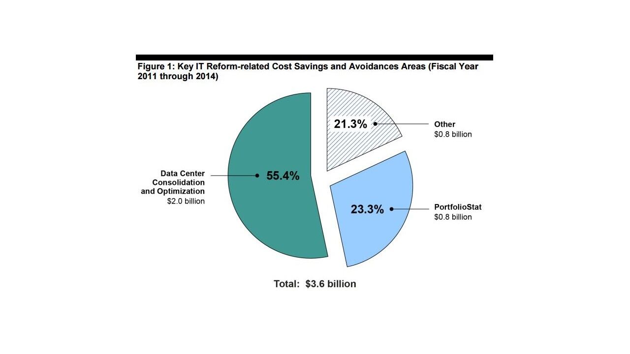 Of the cost savings and avoidances reported to the Government Accountability Office between 2011 and 2014, $2 billion (55.4 percent) can be attributed to data center consolidation efforts.