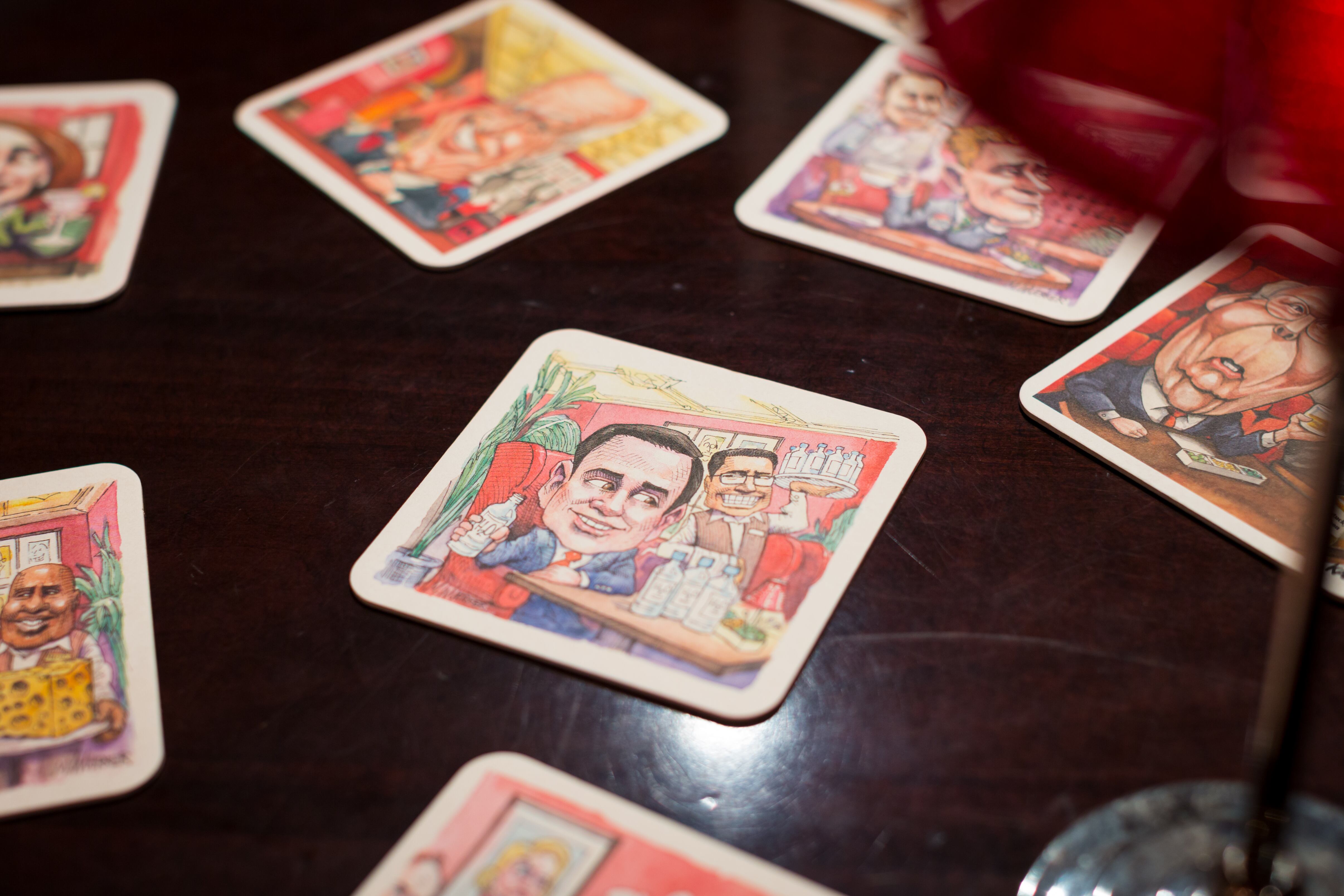 Off The Record introduced colorful coasters by award-winning illustrators and cartoonists