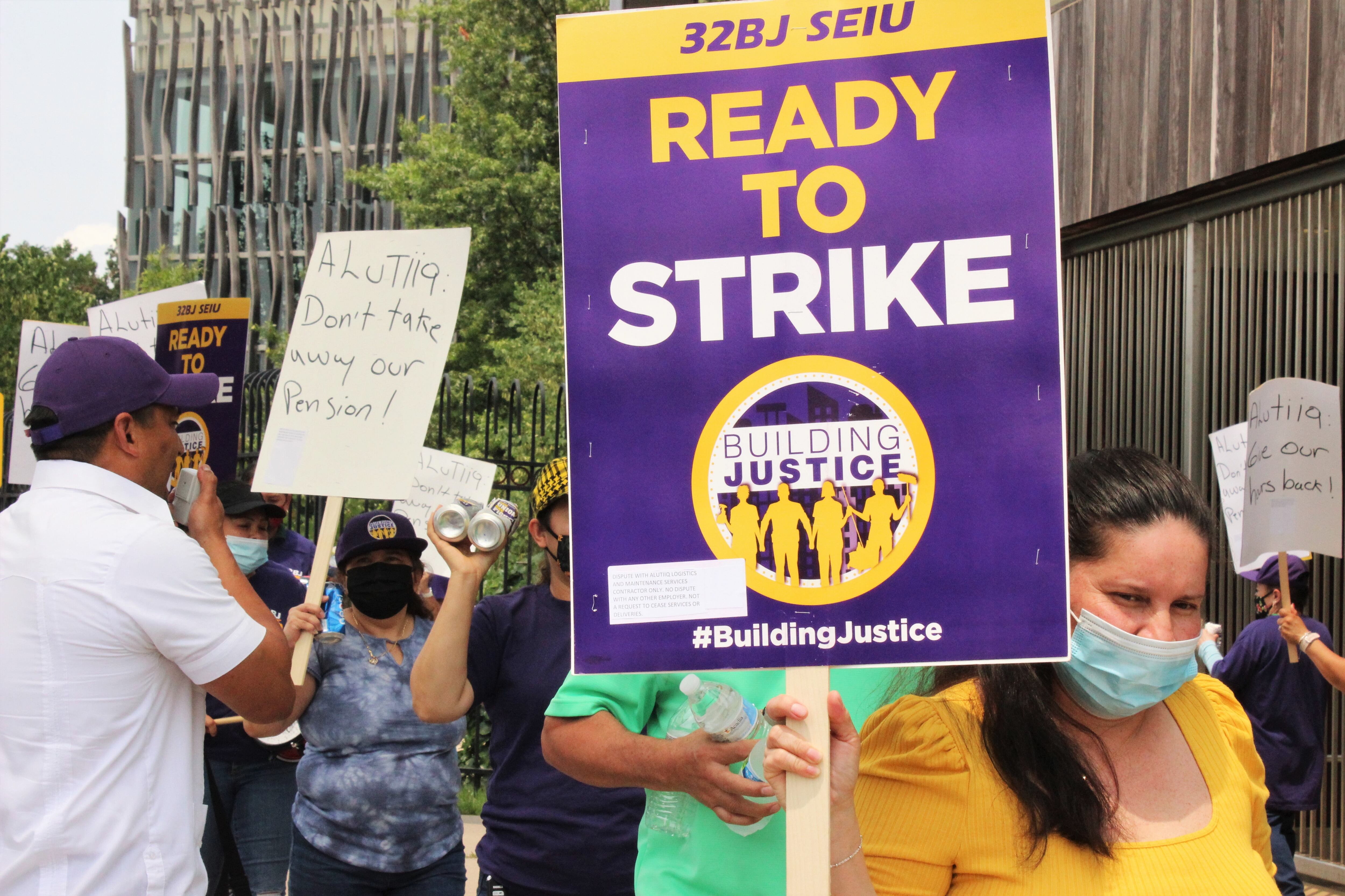 “These workers have been here, some of them 30 years or more. They have a pension, they have all the benefits that each worker in America should have, and this company is coming in here and they took two hours from each one of the workers every day. They want to take away the pension, and they want to change a lot of the language that protects the workers in the contract,” said Jaime Contreras, vice president of SEIU 32BJ, which represents the custodial workers.