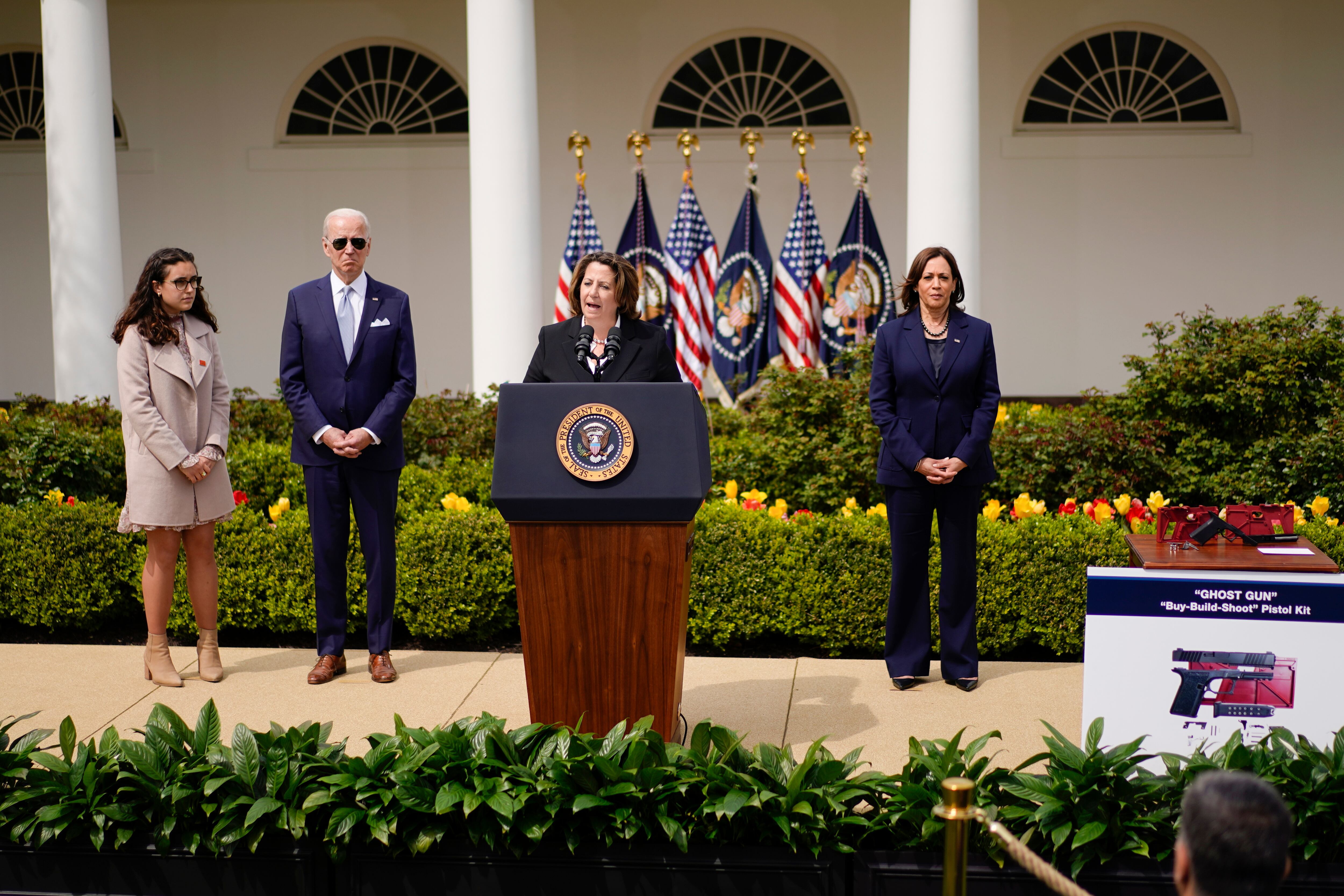 Speaking at the White House, Biden highlighted the Justice Department’s work to finalize new regulations to crack down on ghost guns, and announced the nomination of Steve Dettelbach, who served as a U.S. attorney in Ohio from 2009 to 2016, to run the Bureau of Alcohol, Tobacco, Firearms and Explosives.