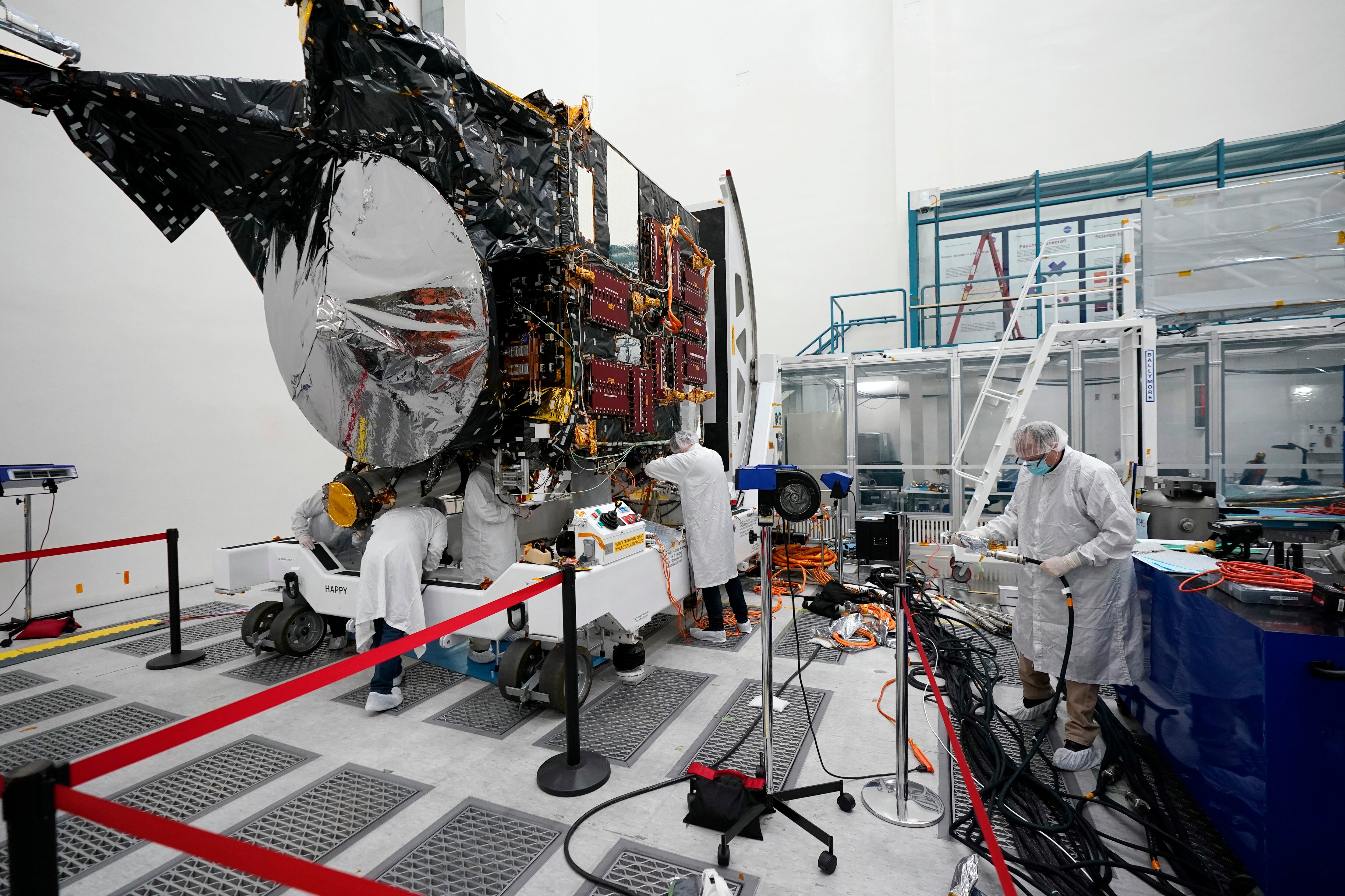 Led by Arizona State University on NASA’s behalf, the $1.2 billion mission will use a roundabout route to get to the asteroid. The van-size spacecraft with solar panels big enough to fill a tennis court will swoop past Mars for a gravity boost in 2026. Three years later, it will reach the asteroid and attempt to go into orbit around it, circling as high as 440 miles (700 kilometers) and as close as 47 miles (75 kilometers) until at least 2031.
