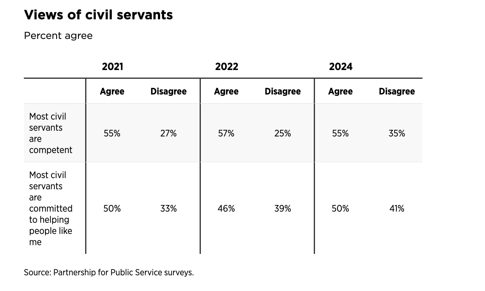 A Partnership for Public Service poll sampling 800 U.S. adults this spring found just 23% trust the government, compared to 35% in 2022. The results show more Americans consider the federal government to be incompetent, and just 15% believe it to be transparent.