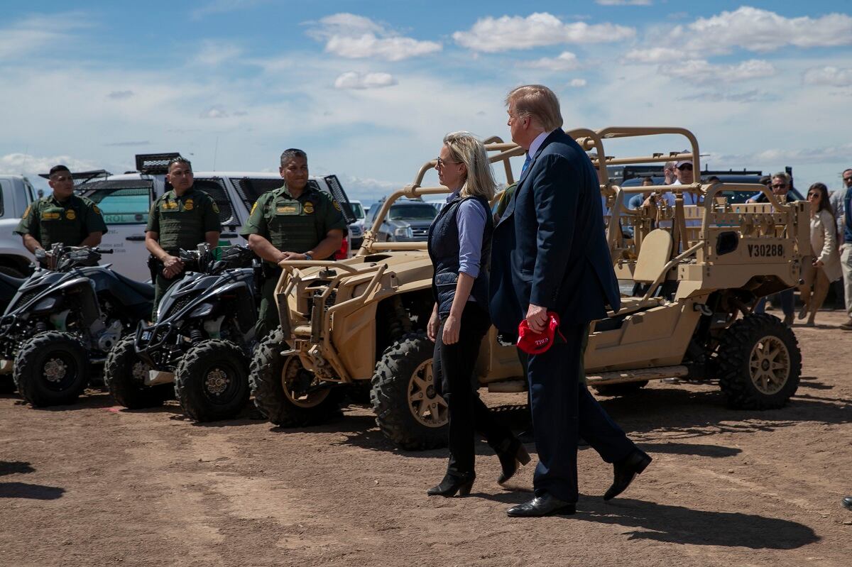 Nielsen traveled to the U.S.-Mexico border on Friday with Trump to participate in a roundtable with border officers and local law enforcement. There she echoed Trump's comments on the situation at the border, though she ducked out of the room without explanation for some time while Trump spoke. As they toured a section of newly rebuilt barriers, Nielsen was at Trump's side, introducing him to local officials. She returned to Washington afterward on a Coast Guard Gulfstream, as Trump continued on a fundraising trip to California and Nevada.
