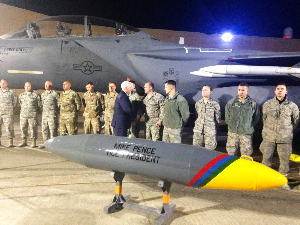 The 332nd Air Expeditionary Wing is stationed at the base and has dropped nearly half of the munitions during the operation to destroy the Islamic State group in Iraq and Syria. Pence credited the troops’ “heroic actions” to dismantle terror organizations in the region.