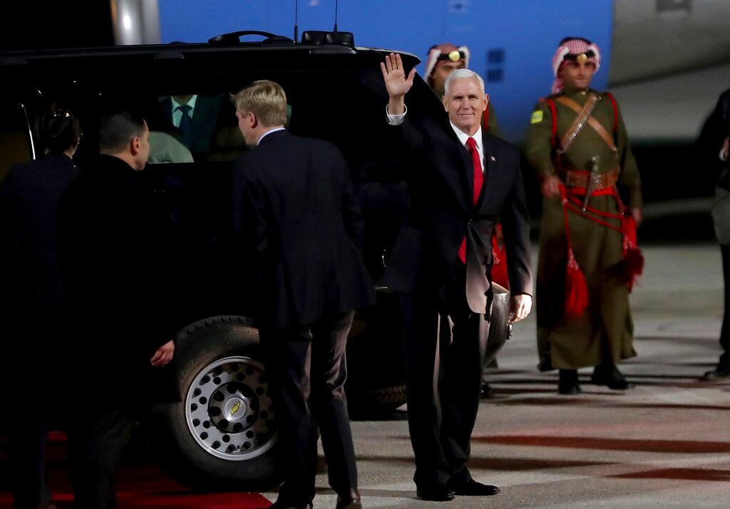Landing aboard a C-17 military aircraft, Pence visited the undisclosed military base in the Middle East following his meetings in Amman with Jordan’s King Abdullah II. Journalists covering the vice president were asked to withhold the name and location of the base, and the number of troops stationed here, because of security and diplomatic concerns.