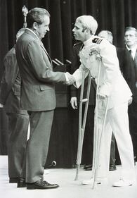 That occured in 1967, when then Lt. Cmdr. McCain’s Skyhawk aircraft was shot down during a bombing mission over Hanoi. He fractured both arms and a leg while ejecting from the plane, and he was refused proper medical treatment by North Vietnamese troops after his capture.