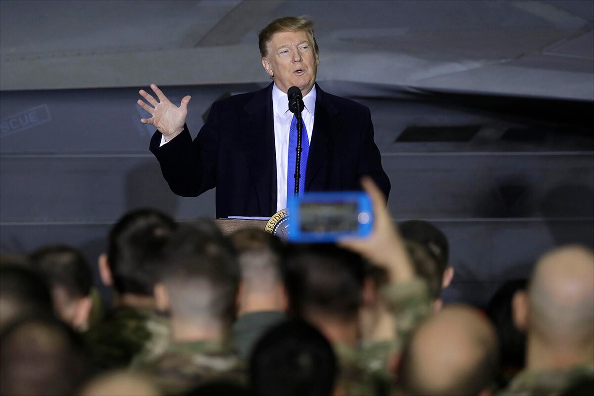 Trump made his statement to troops in Alaska during a refueling stop on his way home from meeting in Vietnam with North Korean leader Kim Jong Un.