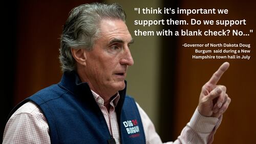 The governor said during his own New Hampshire town hall that support for Ukraine is critical, but not with a “blank check.”