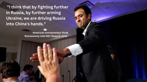 Ramaswamy has said he does not see aiding Ukraine against Russia as a top priority, rather that he sees Russia’s alliance with China as America’s primary military threat.