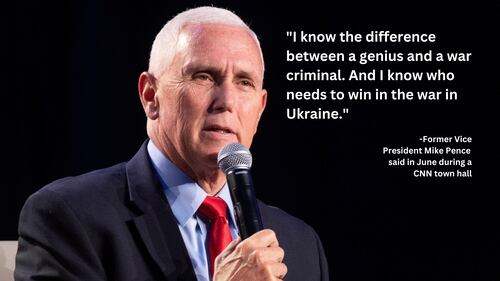 “I believe the United States of America needs to continue to provide the courageous soldiers in Ukraine with the resources they need to repel that Russian invasion and restore their territorial integrity,” Pence said in June during a CNN town hall, adding he believes the Biden administration has been slow in providing military resources to Ukraine.