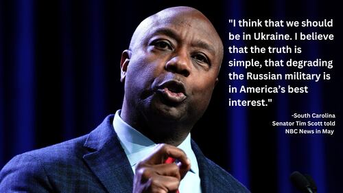 The senator, who has supported aiding Ukraine since early in the conflict, told NBC News in May that “President Biden has done a terrible job explaining and articulating to the American people” the United States’ interests in assisting its ally against Russia. He argued that American involvement in Ukraine is necessary to weaken the Russian military and reduce attacks on both the U.S. and on NATO partners.