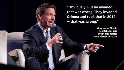 DeSantis previously described Russia’s war in Ukraine as a “territorial dispute,” but after criticism from several Republicans, he later walked back his remarks in an interview with British broadcaster Piers Morgan, commenting that his wording was “mischaracterized.” He went on to describe Russian President Vladimir Putin a “war criminal.”