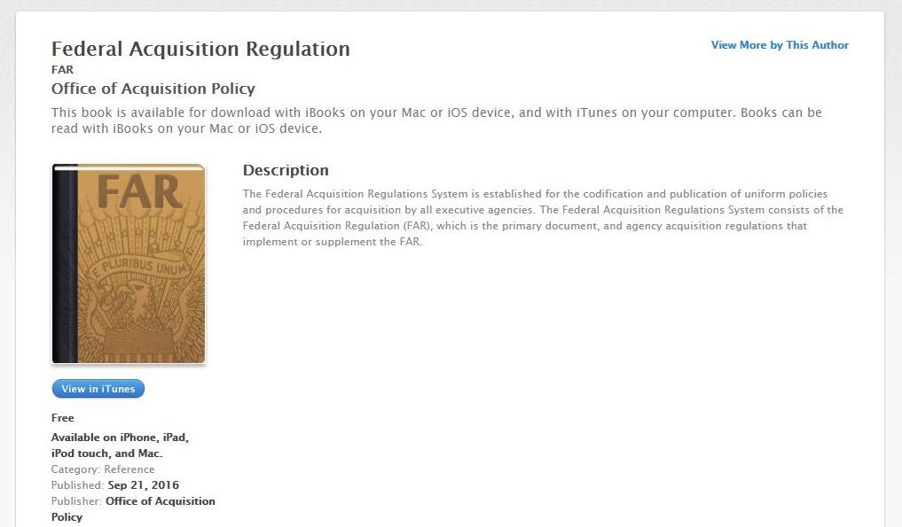 The General Services Administration has released a free iBook version of the Federal Acquisition Regulation (FAR), the set of rules governing the federal government’s purchasing process.