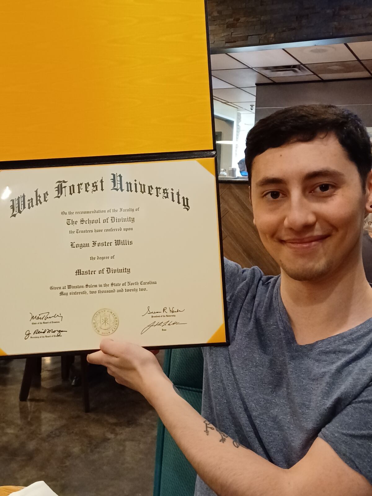 He used his GI Bill to enroll at Wake Forest University in August 2019 and earned his master’s in philosophy and religion.
